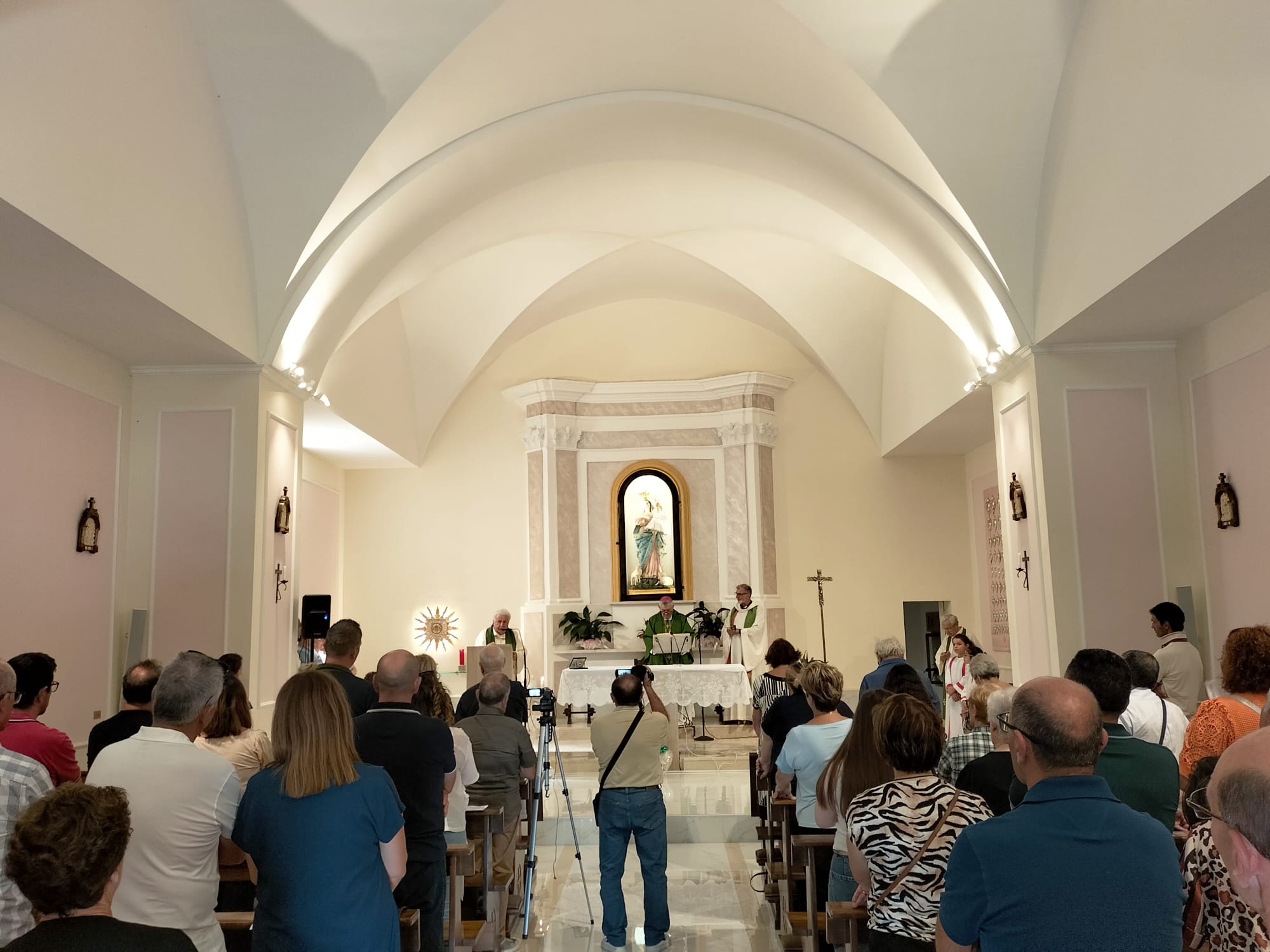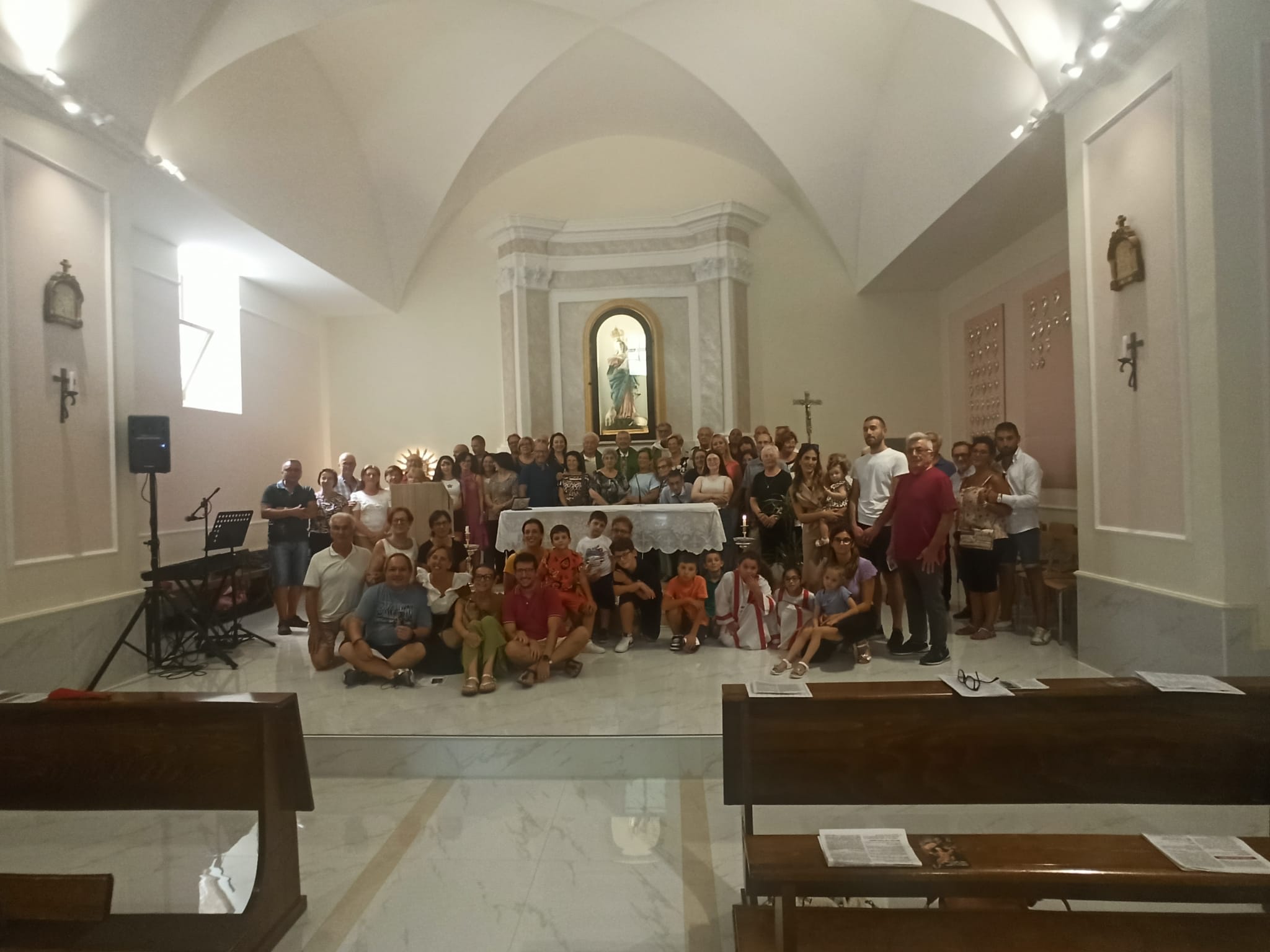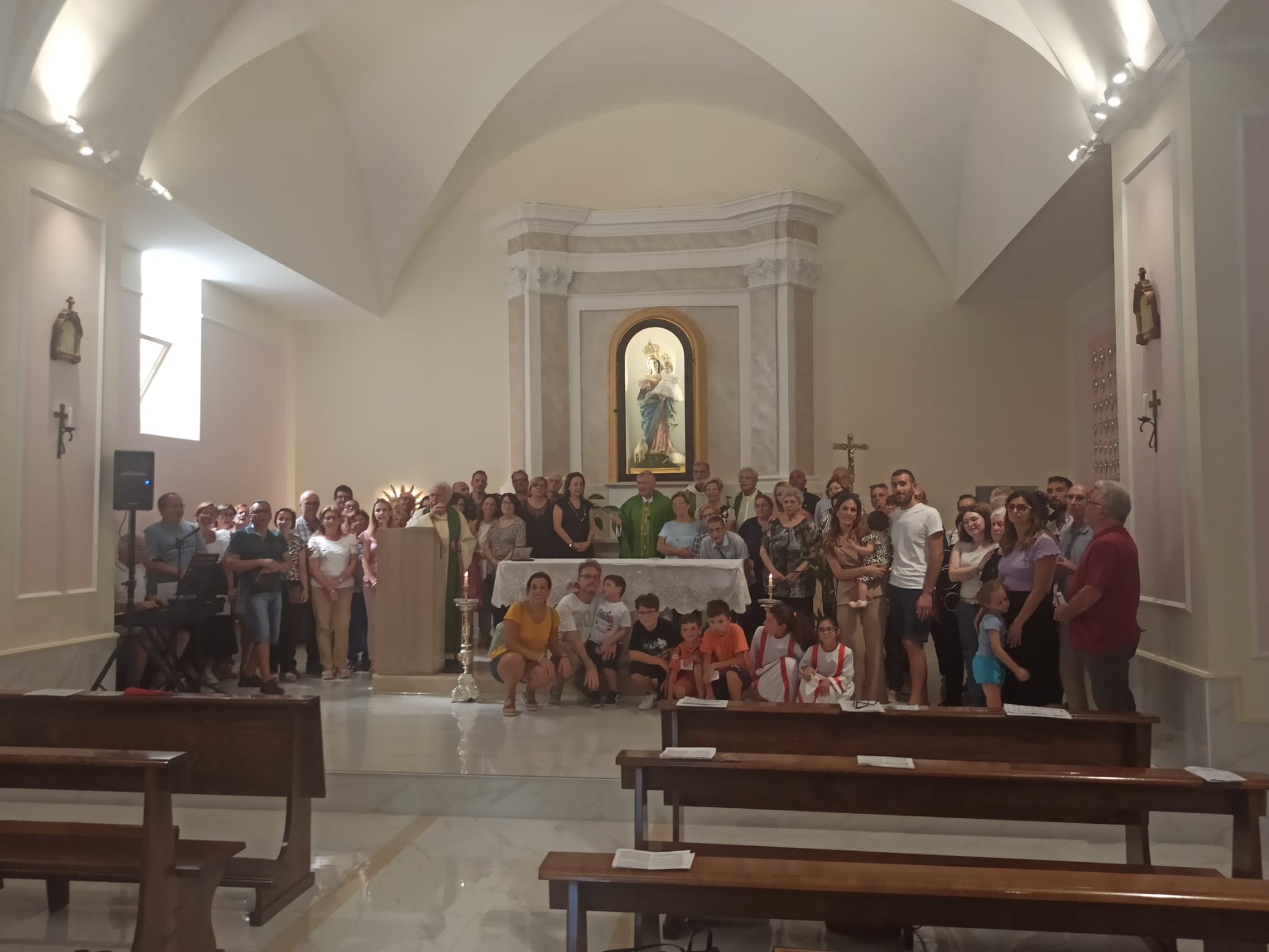 Domenica 8 settembre 2024 si è svolto presso il Santuario MADONNA di Santa Giusta una Giornata interamente dedicata a riscoprire la bellezza dell’amore coniugale. Tanti gli sposi che hanno scelto di dedicare il giorno del riposo settimanale per fermarsi, pregare e celebrare l’amore. La relazione di Giovanna Abbagnara, giornalista e scrittrice sui passi dell’amore coniugale, la Celebrazione Eucaristica presieduta dal Vescovo, Mons. Gianfranco De Luca che ha donato nella sua omelia tanti spunti interessanti alla luce del Vangelo del giorno, hanno fatto di questa giornata un appuntamento prezioso per dare nuovo slancio al cammino di pastorale familiare.