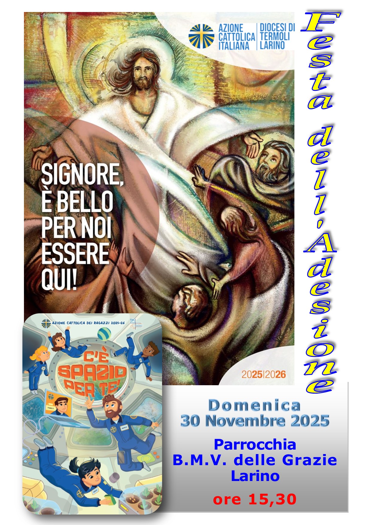Domenica 30 Novembre 2025 (I° Domenica di Avvento) presso la Parrocchia della Beata Maria Vergine delle Grazie a Larino abbiamo vissuto un bel momento di gioia, di condivisione, di fraternità e di partecipazione numerosa alla Festa dell’Adesione diocesana, con la consegna del segno dell’adesione.