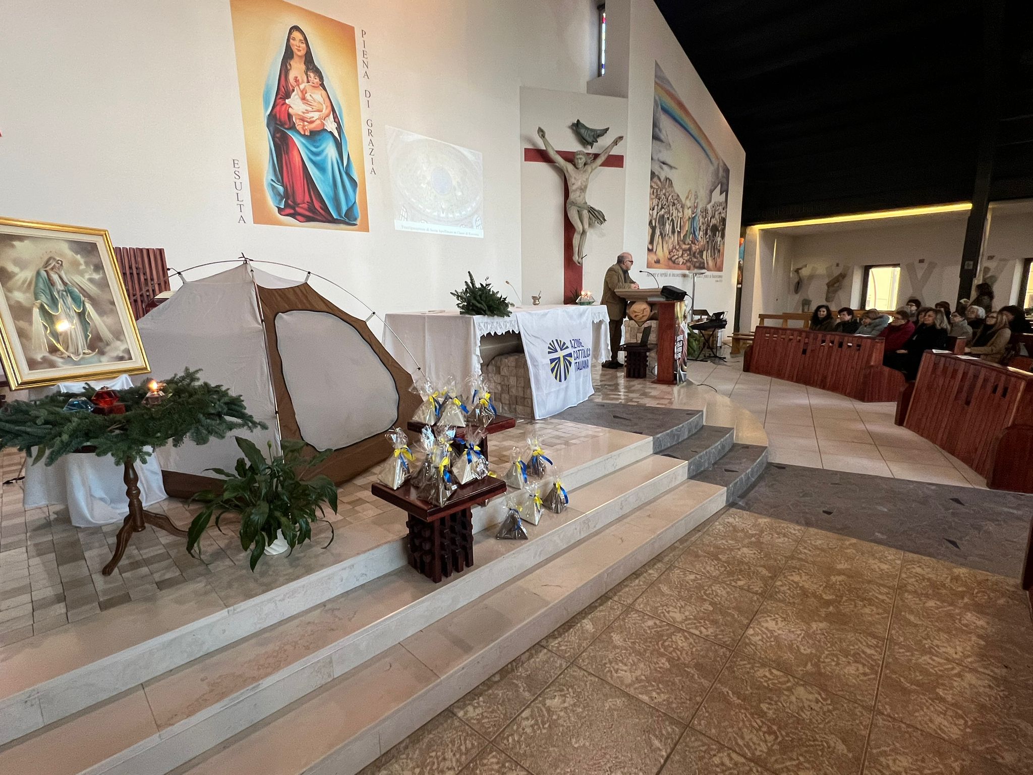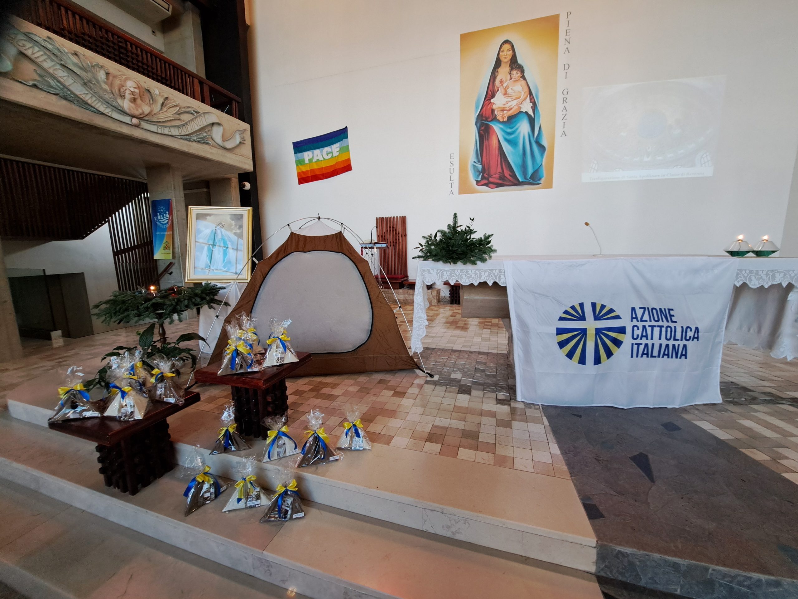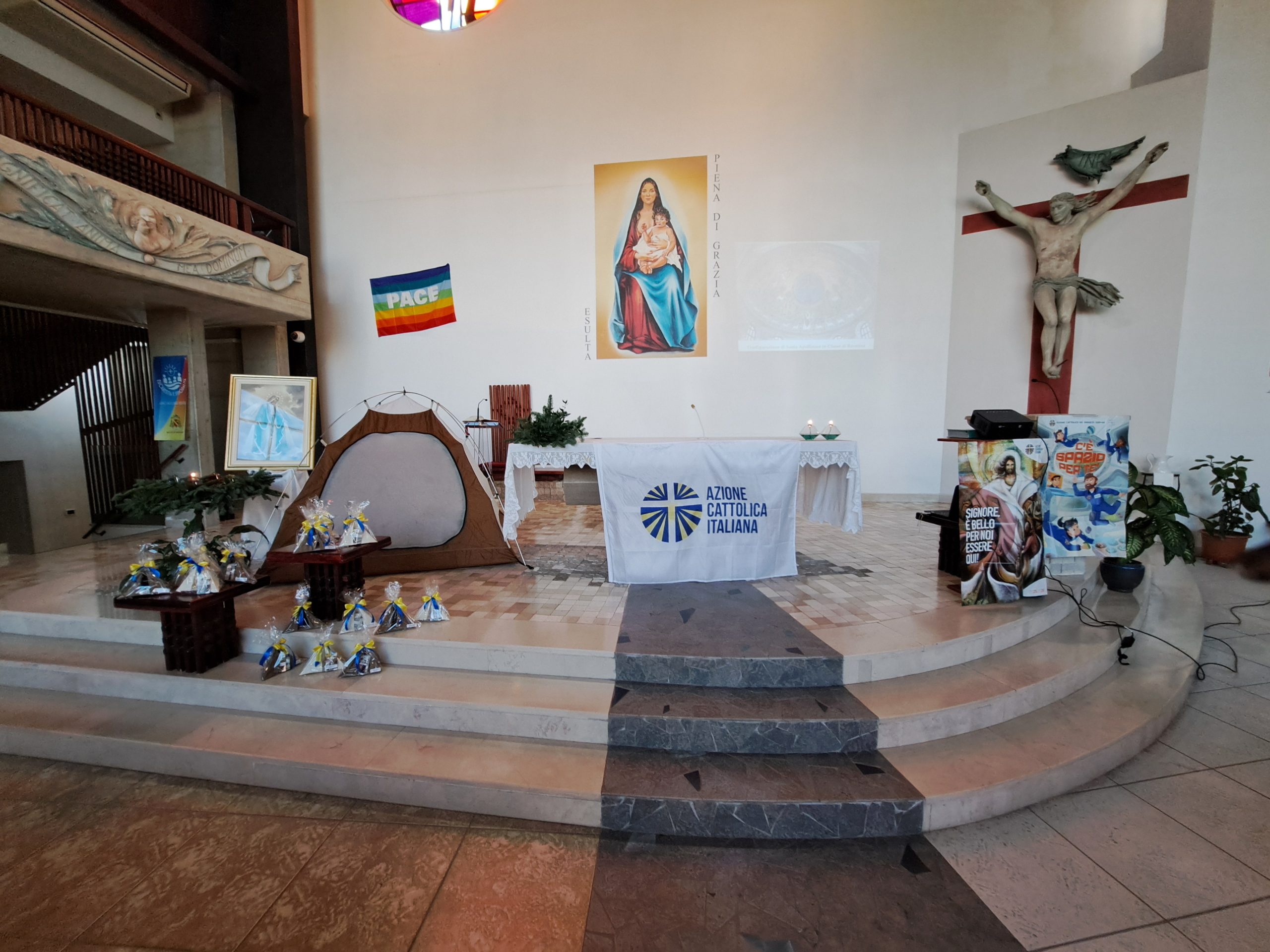 La celebrazione dell’adesione è stata presieduta dall’assistente diocesano del Settore Giovani e A.C.R. don Alessio Rucci e, durante questo momento sono stati presenti l’assistente unitario e del Settore Adulti don Gianfranco Mastroberardino e il presidente diocesano Pio Giacinto Cirelli, rendendo presente anche il Vescovo Mons. Claudio Palumbo attraverso un messaggio di saluto e di vicinanza all’Azione Cattolica all’inizio della celebrazione. Alla festa dell’adesione è intervenuto Enrico Michetti consigliere nazionale del Settore Adulti proveniente dalla Diocesi di Avezzano.