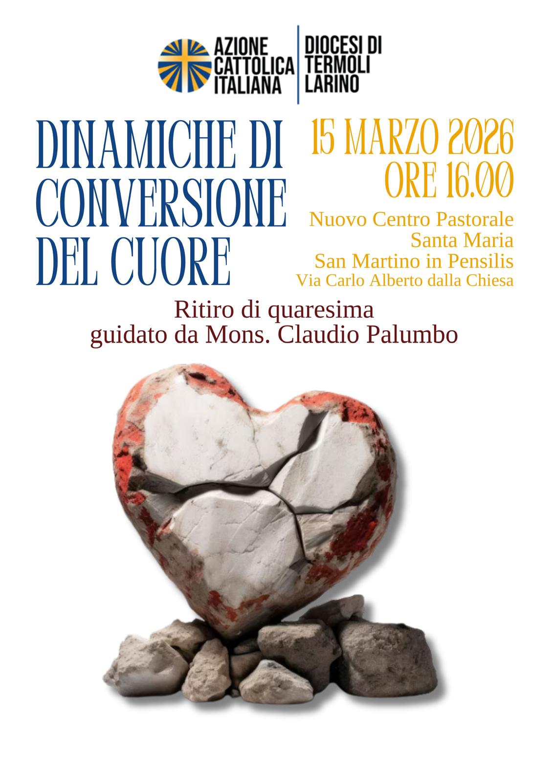 Dinamiche di conversione del cuore è il tema del Ritiro di Quaresima organizzato dall’Azione Cattolica diocesana a S. Martino in Pensilis presso il Nuovo Centro Pastorale Santa Maria.