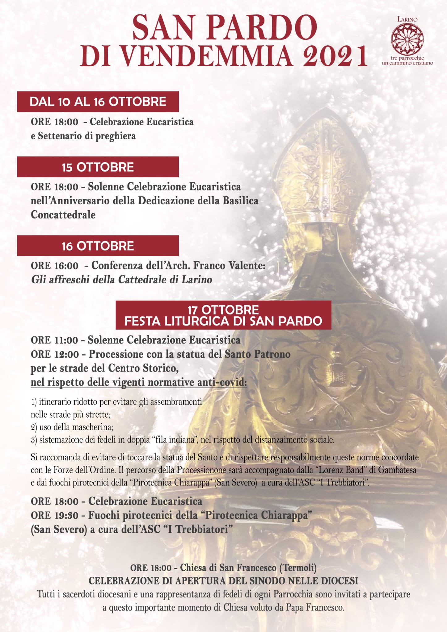 Festa liturgica San Pardo a Larino – programma iniziative (San Pardo di Vendemmia)