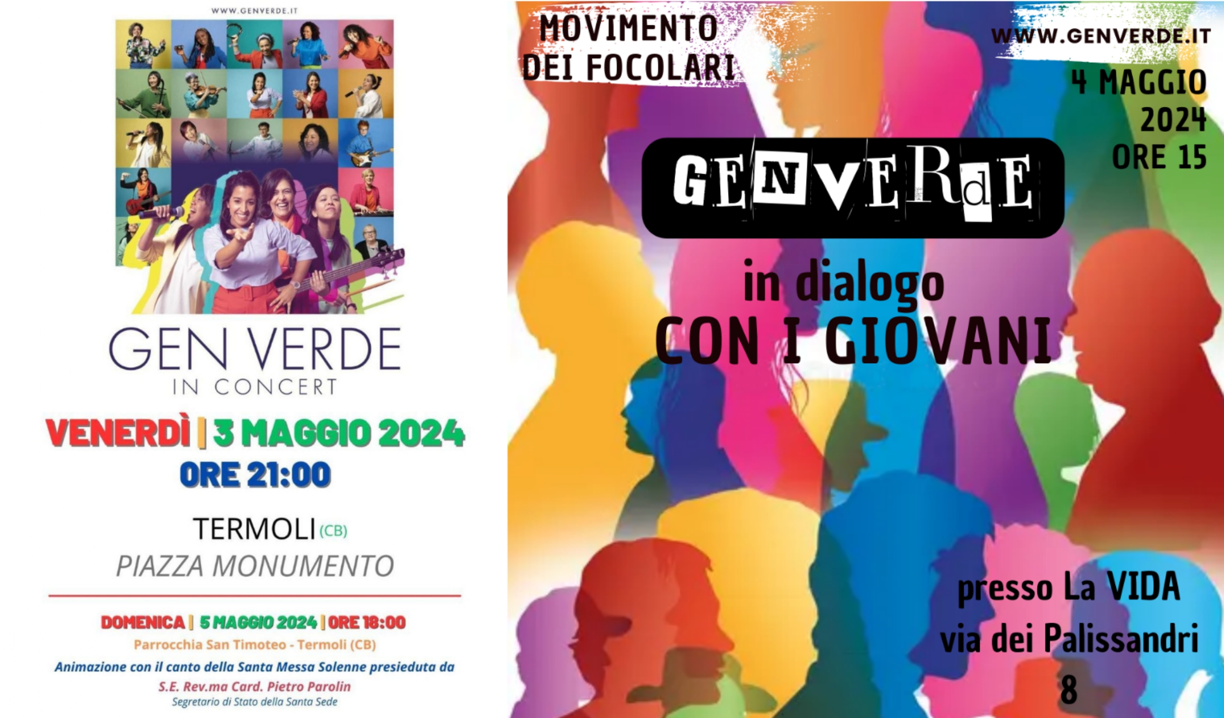 Sabato 4 maggio 2024, ore 15 – centro La Vida in via dei Palissandri – incontro “Gen Verde in dialogo con i giovani”