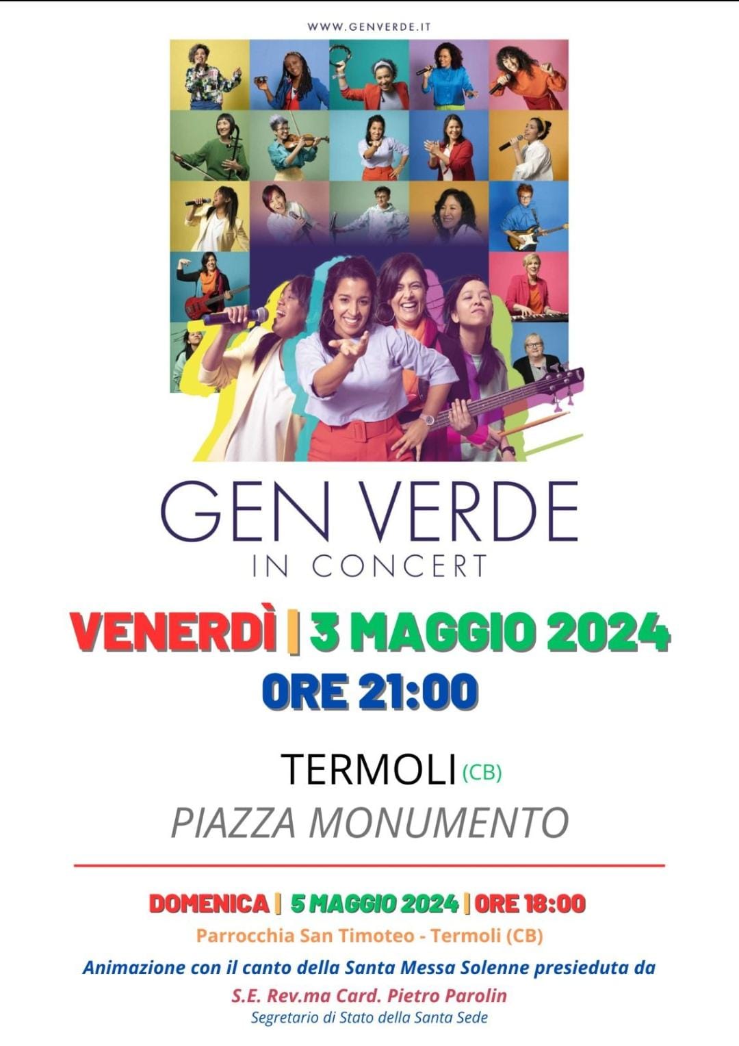 Un concerto in piazza Monumento (3 maggio), un incontro con i giovani (4 maggio) e l’animazione della messa presieduta dal cardinale Pietro Parolin (5 maggio): saranno tre i momenti che vedranno coinvolti il Gen Verde International Performing