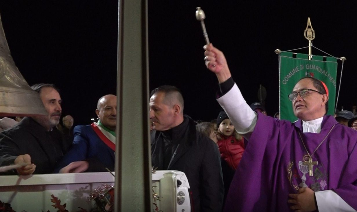 Guardialfiera, 9 dicembre 2024 ore 18,00. Ex Diocesi di Guardialfiera accoglie con gioia il neo Cardinale S.E. Pablo Virgilio David, vescovo titolare di Guardialfiera dal 2006 al 2015, con la prima celebrazione di un solenne pontificato da quando è diventato cardinale (8 dicembre 2024), e con la benedizione della campana del Giubileo realizzata dalla Pontificia Fonderia Marinelli di Agnone. Alcune foto di questo momento significativo alla presenza delle autorità civili e della comunità. Un messaggio di augurio e ogni benedizione per il nuovo ministero del Cardinale che ha voluto condividere in preghiera e con una concreta vicinanza il suo cammino a Guardialfiera.