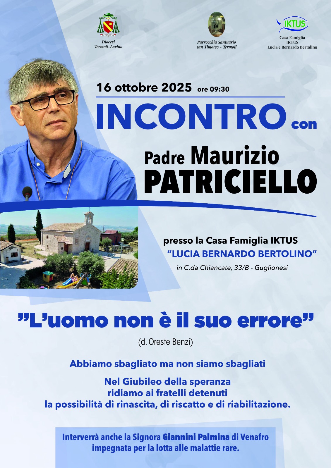 Il 16 ottobre 2025 alle ore 09,30 sarà presso la Casa-famiglia: “CEC-IKTUS Lucia e Bernardo Bertolino” in C.da Chiancate 33/B comune di Guglionesi.