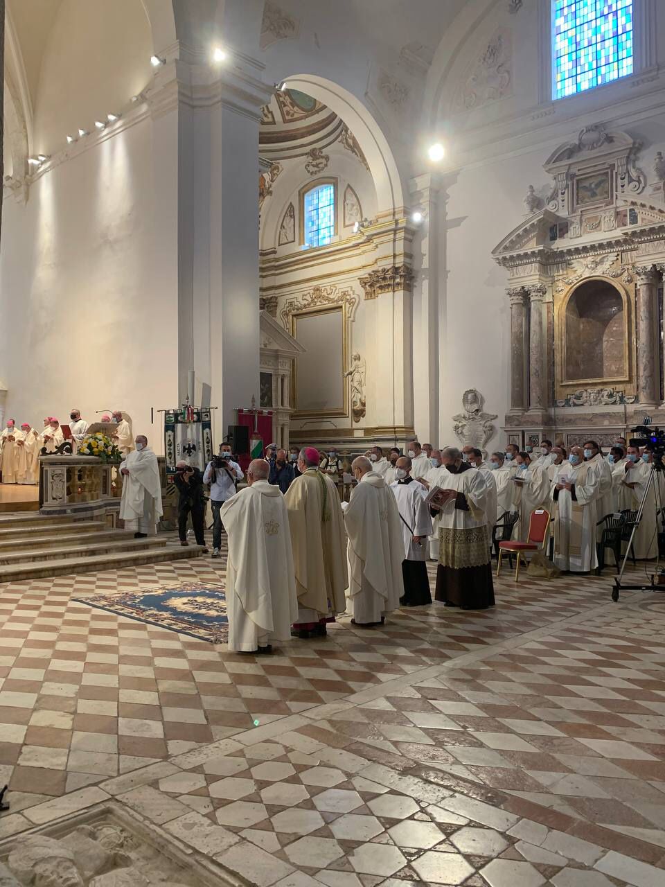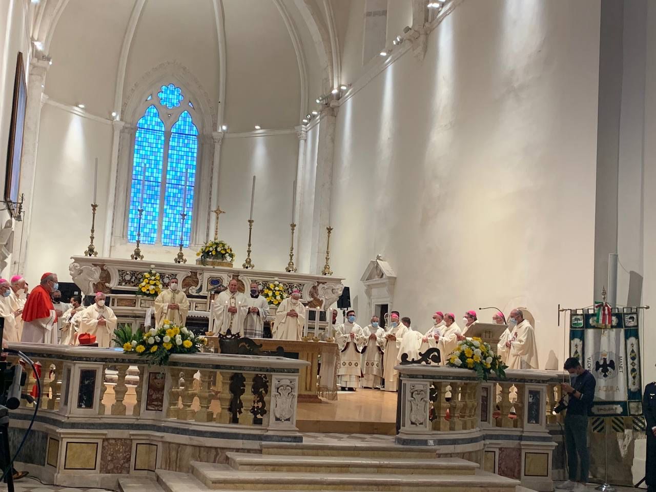 Domenica 12 settembre 2021, solennità del SS. Nome della Beata Vergine Maria, nella basilica di S. Maria di Collemaggio, è stata celebrata la Messa per l’Ordinazione episcopale del Vescovo ausiliare dell’Arcidiocesi di L’Aquila, S. E. Mons. Antonio D’Angelo, titolare della Diocesi di Cerenza.