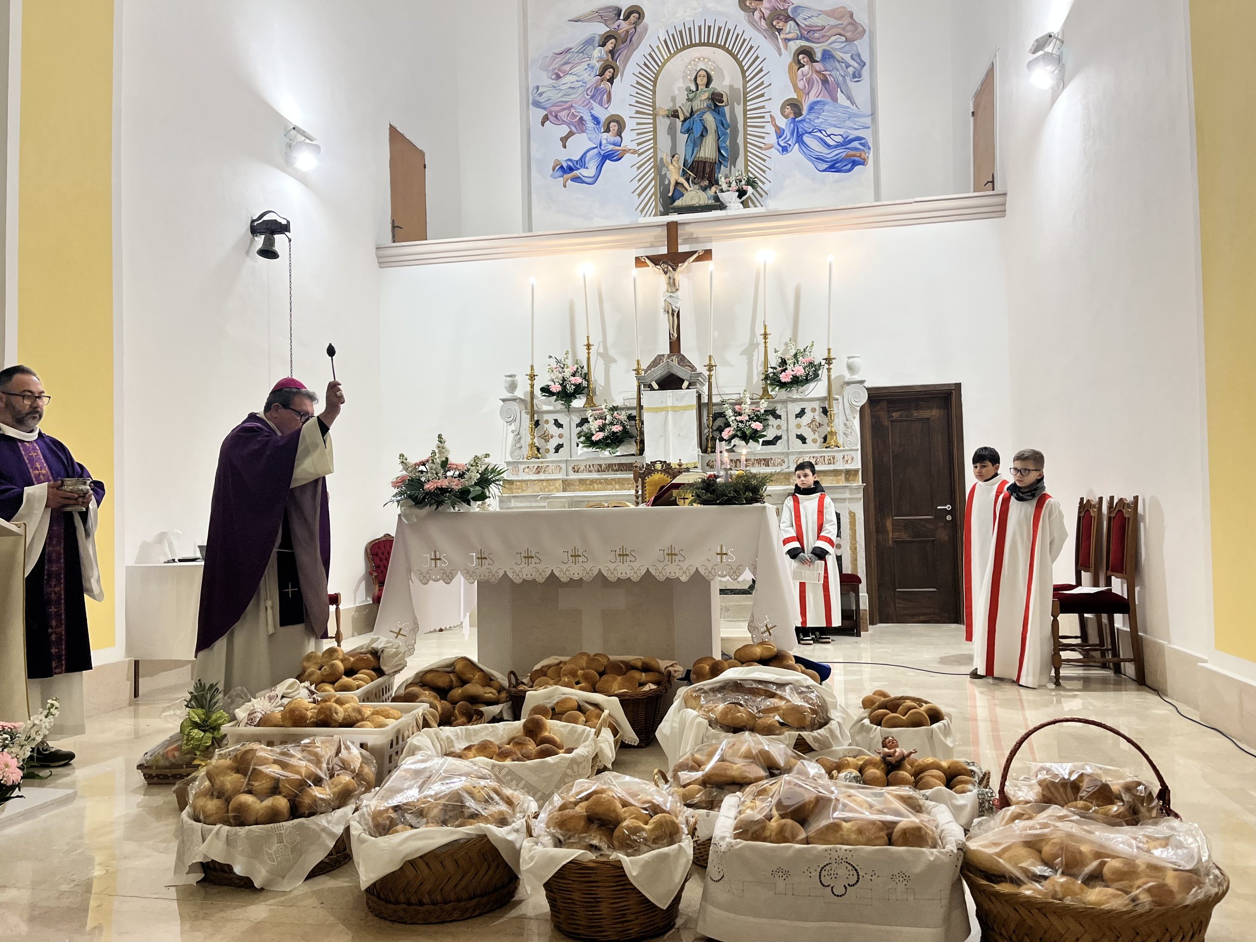 Un contesto di forte commozione ha avvolto la chiesa madre di Santa Maria ad Nives a Montelongo, dove si è rinnovato il rito del pane dell’Immacolata. Domenica 7 dicembre 2025, vigilia della solennità di Maria concepita per opera dello Spirito Santo, il vescovo Claudio Palumbo ha presieduto la santa messa insieme al parroco, don Marco Colonna.