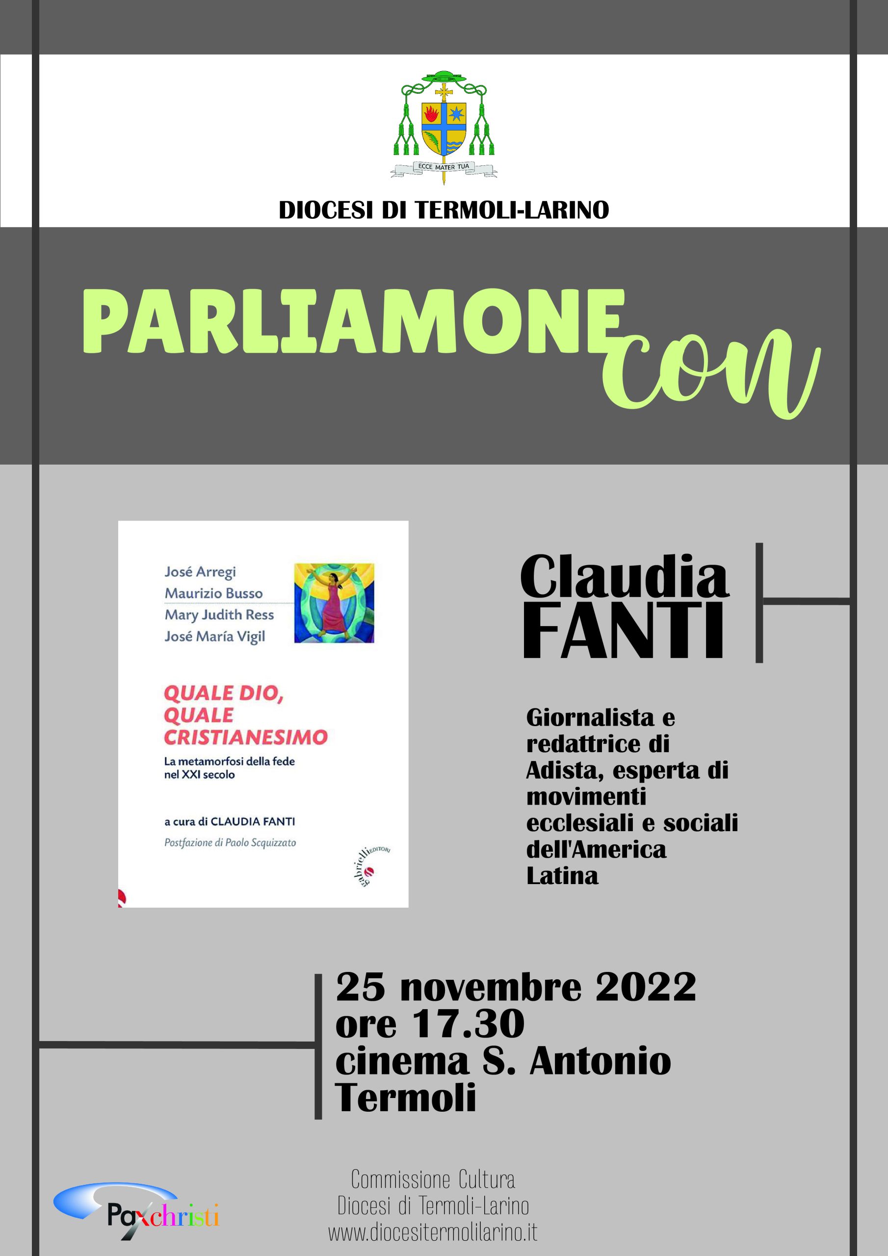 Continuano in Diocesi gli appuntamenti del “Parliamone con…”. Si tratta di una serie di incontri in cui, a partire dalle suggestioni di testi significativi che leggono e interpretano la contemporaneità, a più voci e secondo prospettive disciplinari diverse, ci si interroga sul senso dell’oggi cercando di comprenderne direzioni, risvolti, prospettive e fondamenti. Il prossimo incontro, a cura della Commissione cultura della Diocesi di Termoli-Larino e organizzato con la collaborazione di Pax Christi, si terrà venerdì 25 novembre 2022 alle ore 17.30 nella sala del Cinema Sant’Antonio a Termoli.