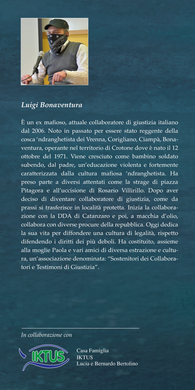 Le domande di Benito Giorgetta poste all’ex mafioso, ora collaboratore di giustizia, Luigi Bonaventura, offrono ad ognuno, attraverso le risposte sincere e stimolanti, la possibilità di farsi un’idea di cosa significhi vivere in terre, famiglie e contesti nei quali la mafia ha sempre dominato e spadroneggiato.