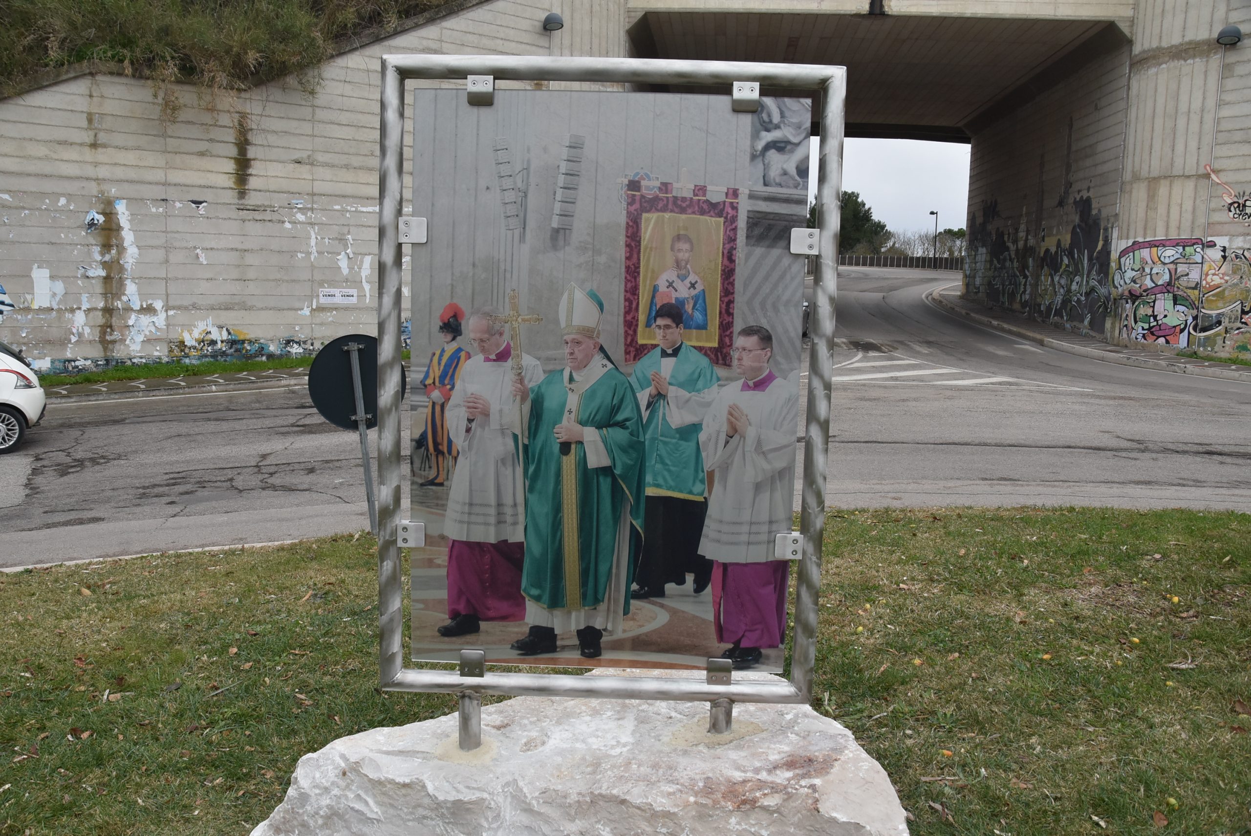 Foto 22 Gennaio 2021 Primo anniversario pellegrinaggio San Timoteo a Roma: inaugurate opere scultoree e gigantografia Papa Francesco condividi su