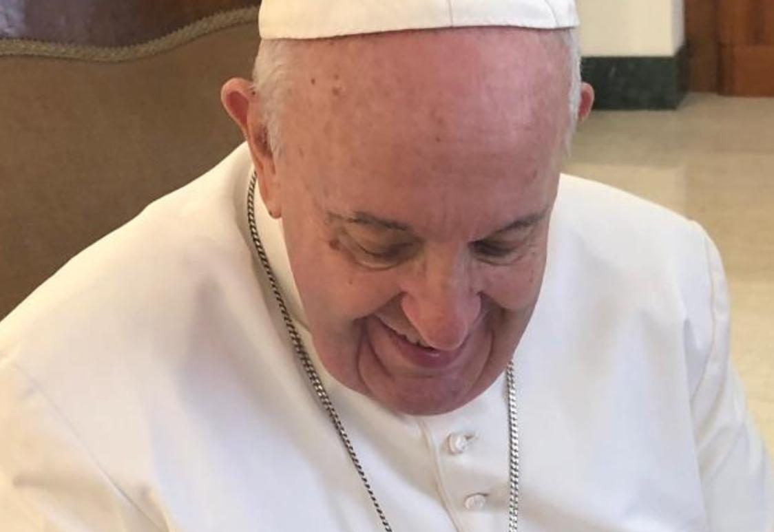guarda con benevolenza il Santo Padre Papa Francesco.