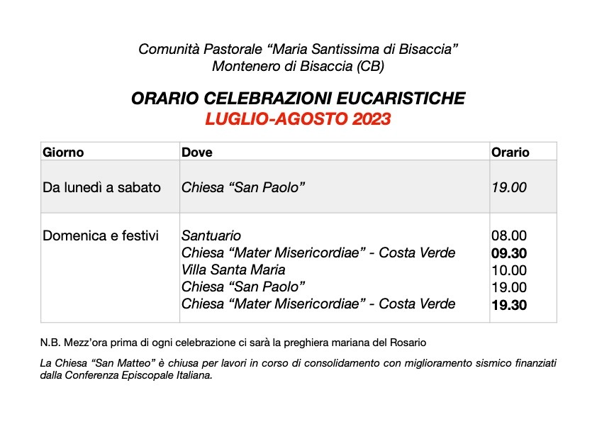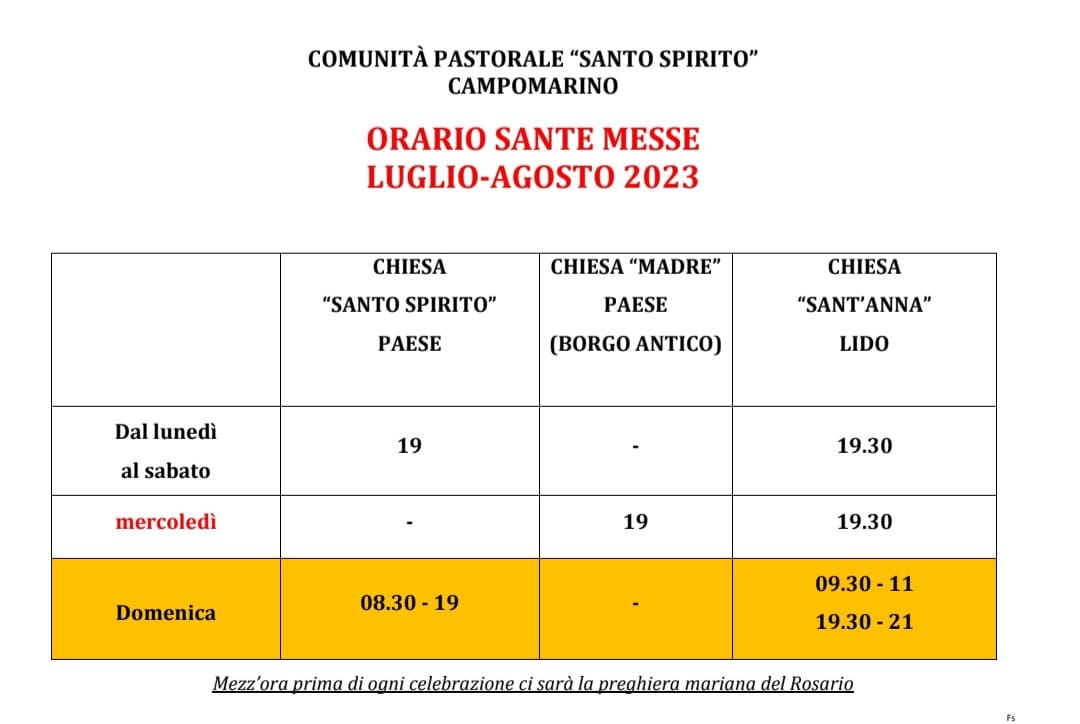 Orario ESTIVO sante messe _TERMOLI E SAN GIACOMO DEGLI SCHIAVONI 2023