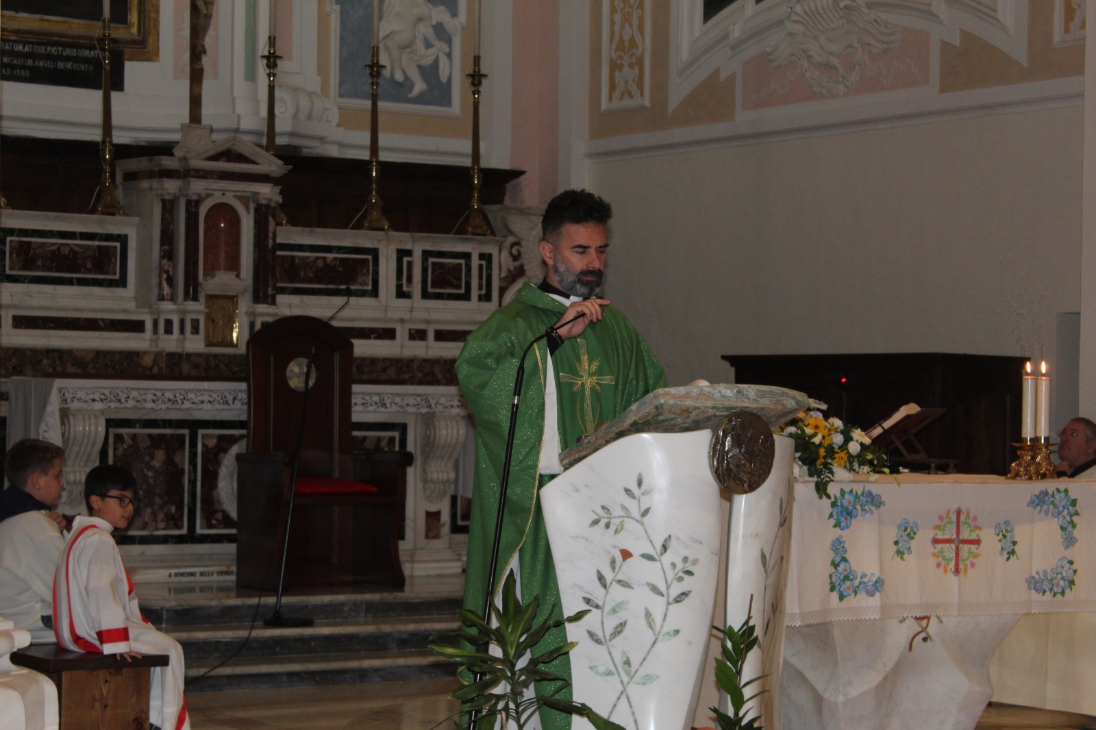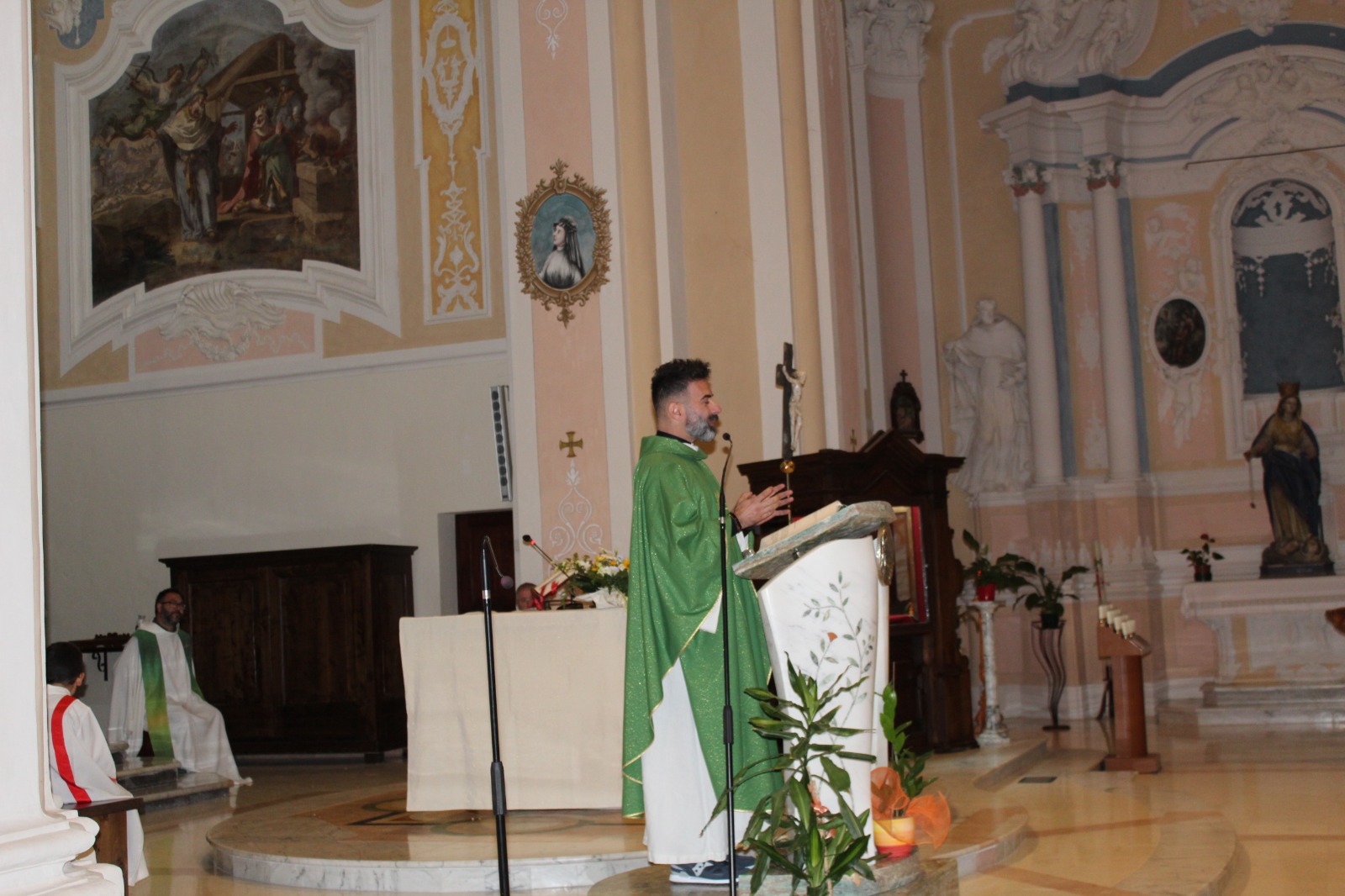 “L’eucarestia è il centro della nostra vita quotidiana. Il nostro è un Dio spezzato d’Amore“: con questa lapidaria affermazione, don Cosimo Schena ha aperto la sua testimoniana nell’omelia tenuta nella celebrazione Eucaristica da lui presieduta a Rotello. La comunità di Santa Maria degli Angeli impegnata in questi giorni, nella preparazione alla Festa Eucaristica di domenica 20 novembre, ha accolto con gioia il sacerdote tarantino, denominato “il poeta di Dio“. Un giovane sacerdote dalla profonda esperienza di fede, condivisa con semplicità con la comunità rotellese in questo secondo giorno di triduo. Richiamando le parole di Santa Teresa di Gesù Bambino, don Cosimo ha invitato i numerosi presenti a pensare al proprio corpo come un grande contenitore, dalla quale dobbiamo imparare a togliere tutto ciò che non ha il sapore di Cristo. Siamo chiamati a riempirci unicamente di Lui che si fa per noi pane spezzato. Assumere nei nostri gesti, quelli che furono le modalità relazionali di quel Gesù Nazareno che, percorrendo le polverose strade del Suo tempo, guardava tutti con occhi pieni d’Amore. Siamo invitati a imitarlo, nel farci quotidianamente pane spezzato per tutti quelli che incontriamo nelle nostre strade di vita.
