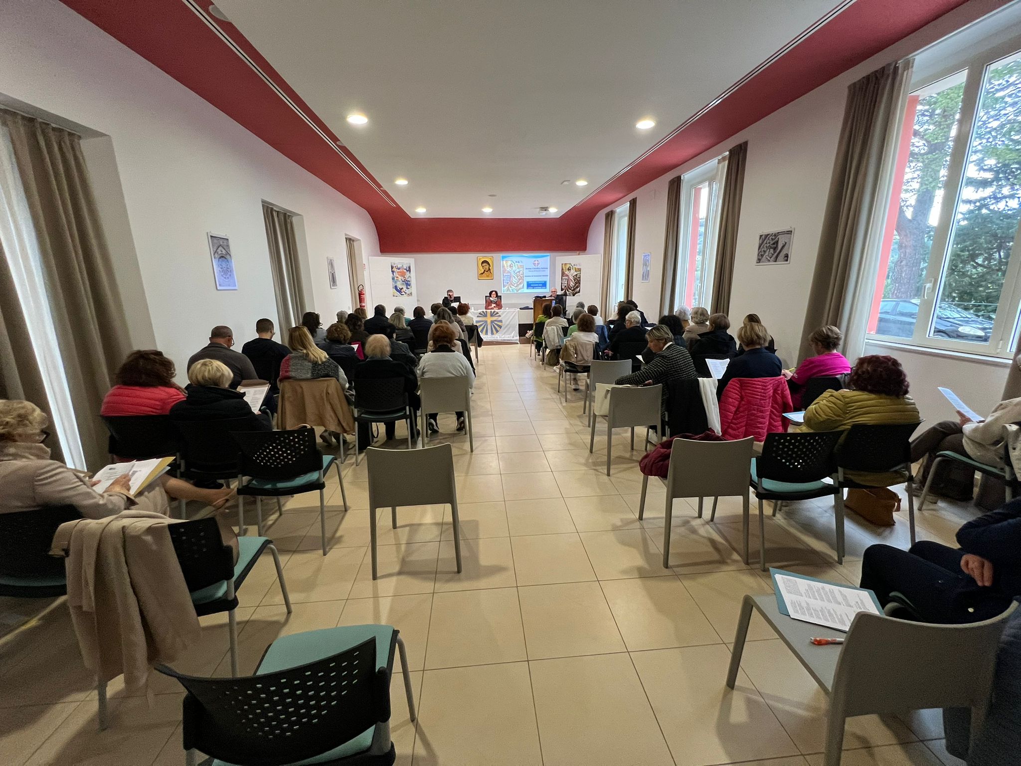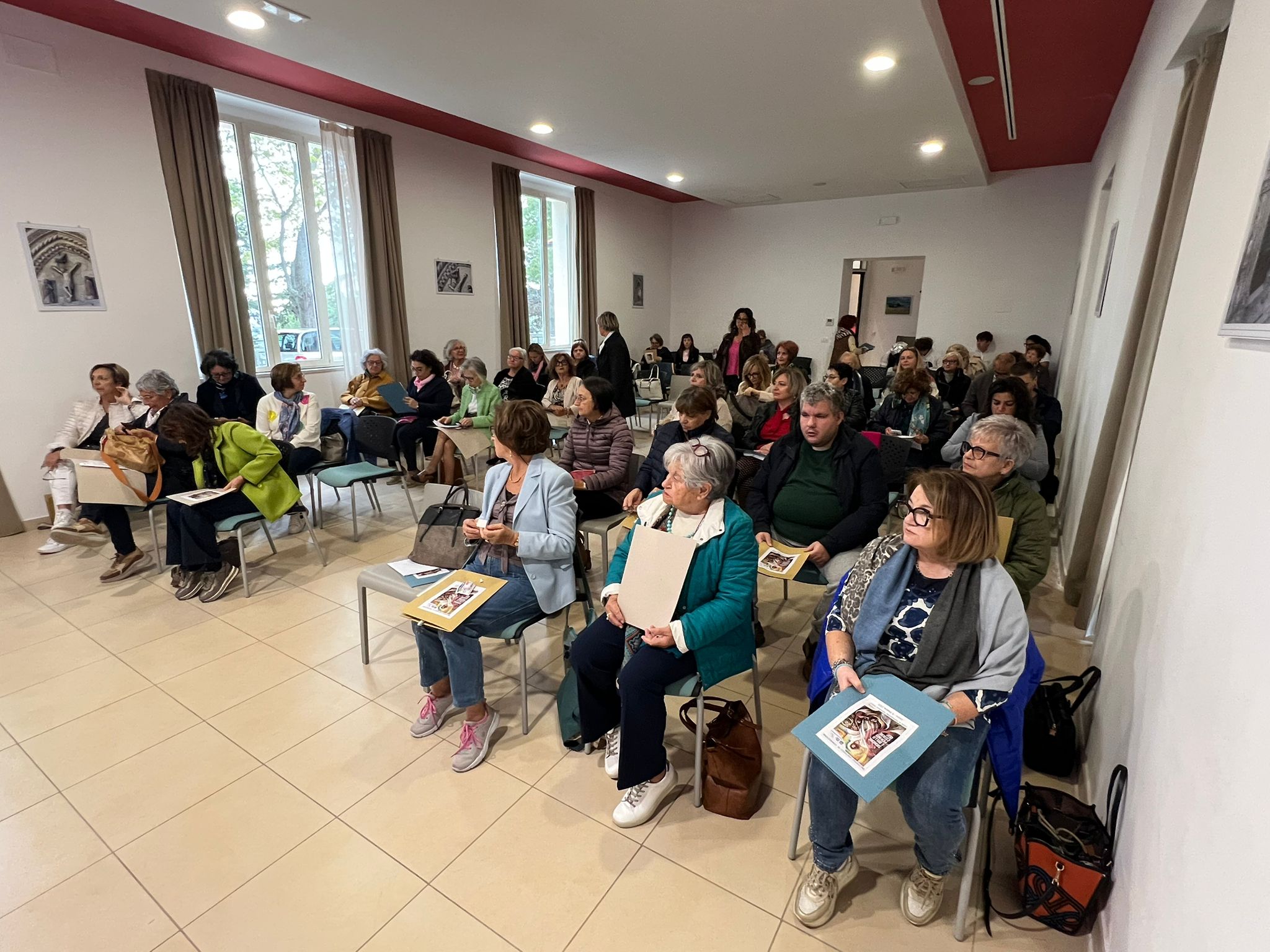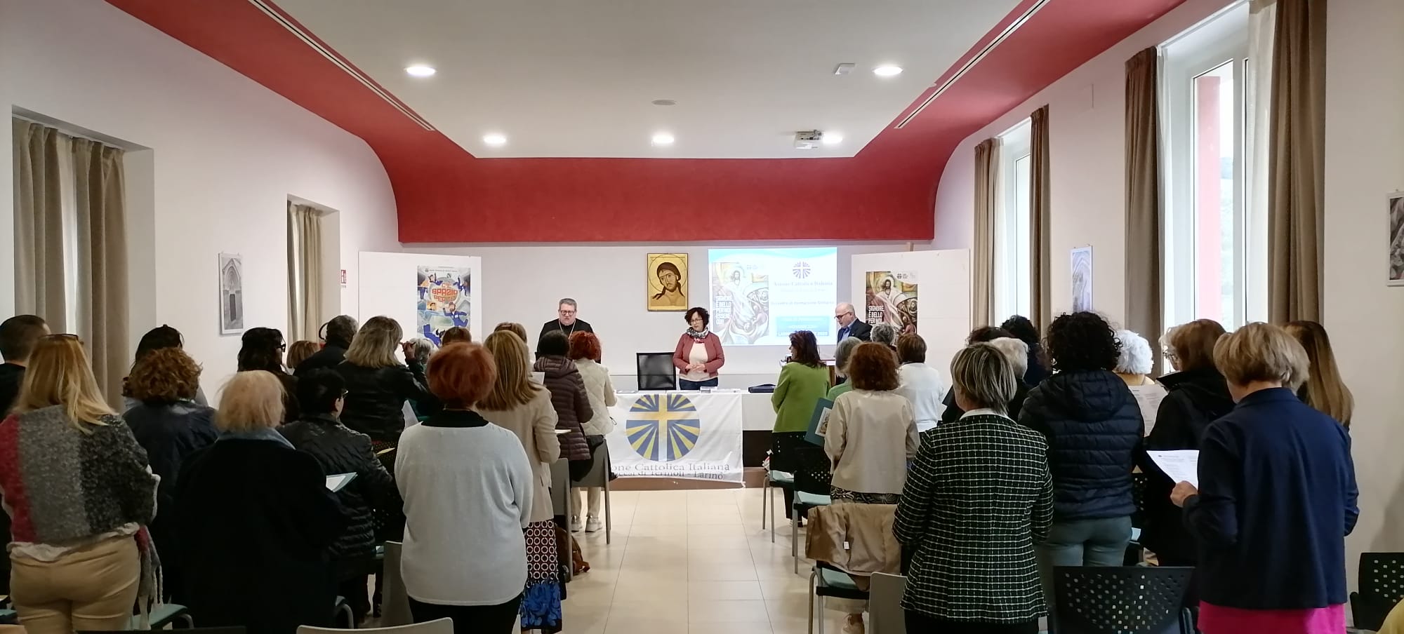 Dopo i saluti del presidente diocesano Pio Giacinto Cirelli, la giornata si è aperta con l’intervento di Mons. Claudio Palumbo che ha commentato per i presenti il brano evangelico della trasfigurazione di Gesù sottolineando come nella vita dei cristiani, oggi, ci sia bisogno di un incontro autentico, come quello dei discepoli sul Tabor, che li faccia passare da un cristianesimo senza Cristo, triste, ad uno fondato sull’innamoramento per cui Cristo diventa l’unico e l’amato. “Il guaio del nostro cristianesimo – ha affermato il Vescovo Palumbo – è che si fa tutto per costrizione e non per attrazione. Manca l’energia dello Spirito Santo che ci porti a dire, come Sant’Ilario di Poitiers, prima di conoscerti, io non esistevo”. La riflessione del Vescovo è continuata con un approfondimento sulla trasfigurazione non come meta, ma come momento di passaggio che porti tutti a mettere Gesù al centro della propria vita: “Gesù solo”, proprio come l’esperienza fatta dai discepoli sul monte.