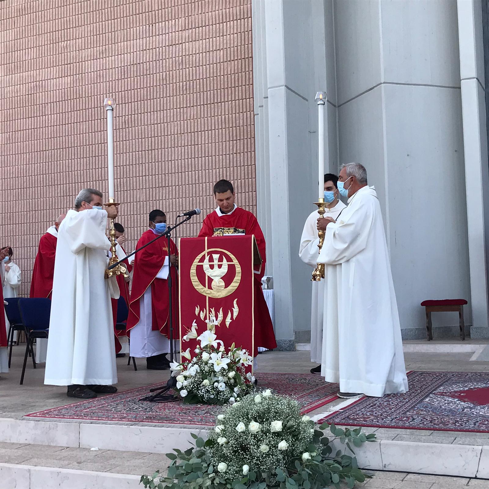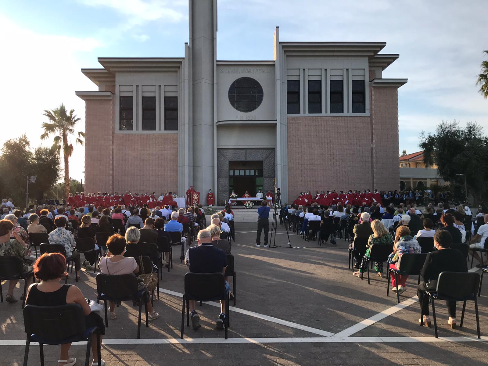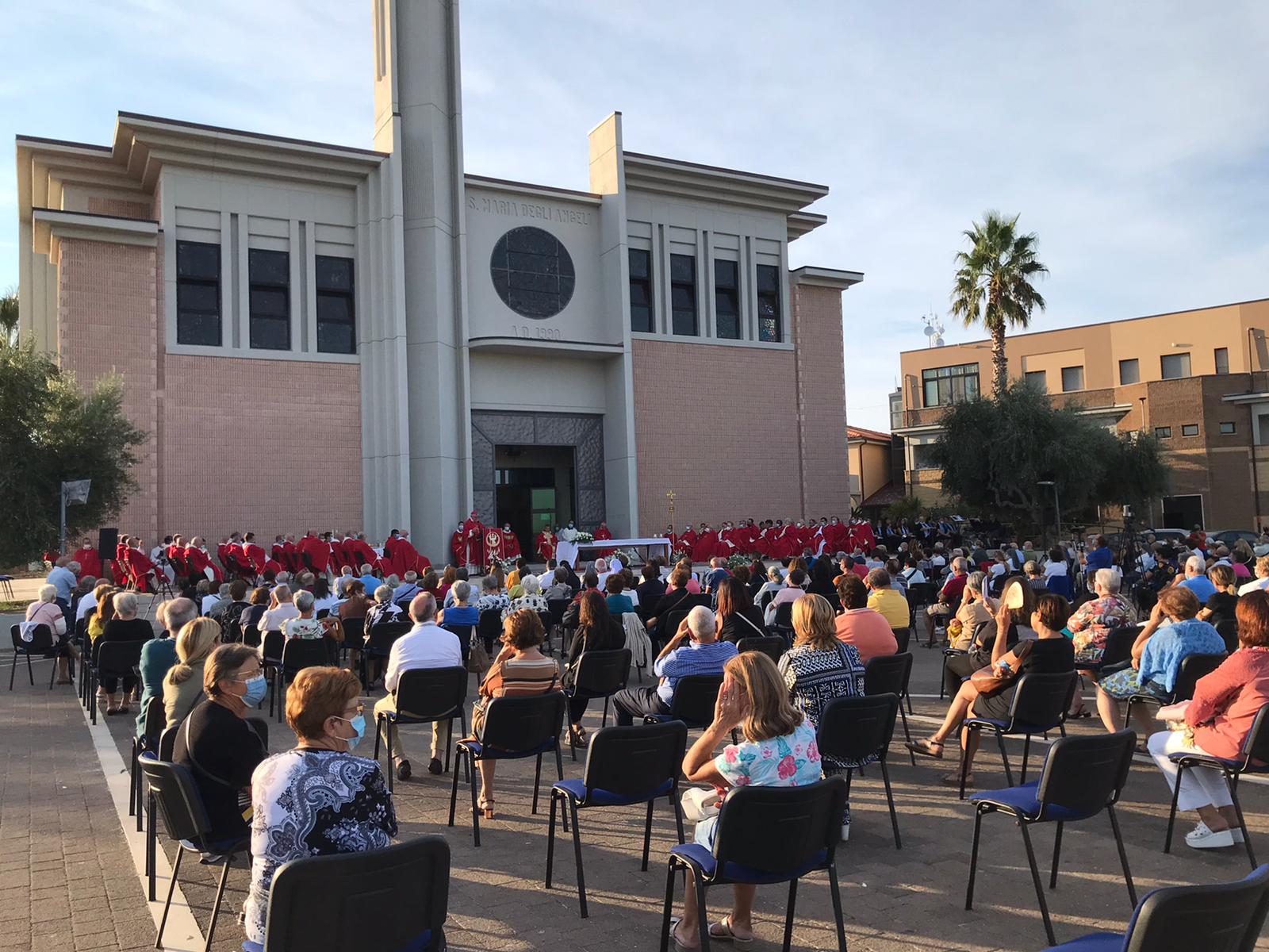 Martedì 14 settembre 2021, Esaltazione della Santa Croce, è ricorso il venticinquesimo anniversario dell’ordinazione presbiterale di mons. Antonio D’Angelo, da poco ordinato vescovo ausiliare della diocesi di L’Aquila. A Termoli è stata celebrata una santa messa all’aperto, nel piazzale della chiesa di Santa Maria degli Angeli, alla presenza del vescovo, mons. Gianfranco De Luca, di mons. Domenico D’Ambrosio, già vescovo diocesano, di mons. D’Angelo, del Presbiterio e di tante persone che hanno voluto esserci in un momento significativo. La funzione è stata animata dal coro parrocchiale e si è svolta nel rispetto della normativa anti-Covid.