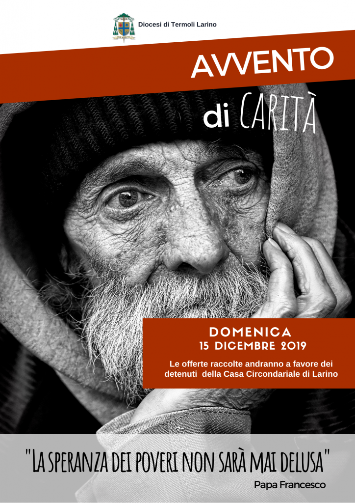 Quest’anno, per la prossima terza domenica di Avvento, 15 dicembre 2019, giornata di fraternità per questo tempo liturgico, la Chiesa Diocesana chiede a tutti, fedeli e non, e ad ogni singola comunità di raccogliere offerte che andranno a favore dei detenuti della Casa Circondariale di Larino.